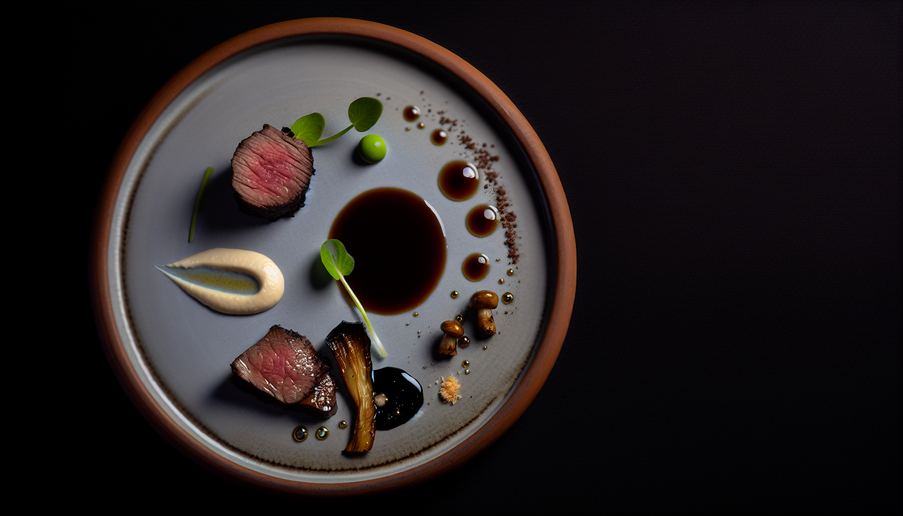 Trühvlijus: Kuumuta demi-glace (300 ml) keemisservani, redutseeri kergelt. Lisa musta trühvli kreem (15 g) ja 10 g võid, vispelda läikivaks. Maitsesta 0,5 g soola ja näpuotsaga pipart.