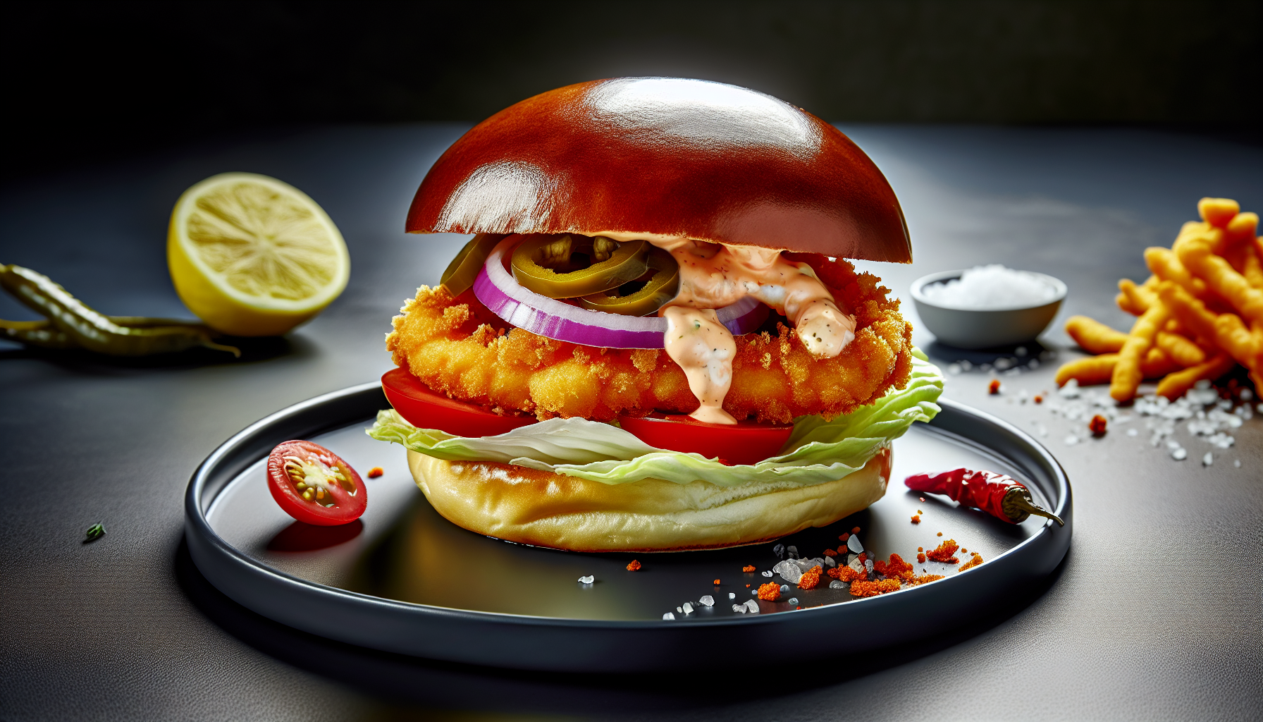 Kergelt suitsune, tuline ja ühtaegu kreemne – see Cajun-krevetiburger toob Ameerika lõunaosa iseloomu sinu lauale. Krõbeda panko-paneeringuga kuldkollased vannamei krevetid kohtuvad pehme brioche’i saial, kus neid raamivad krõmps jääsalat, mahlased kirsstomatid ja särtsakad jalapenod. Tasakaaluks tõstab maitse esile sametine chipotle-aioli, mille sidrunine värskus seob vürtsikuse harmooniliseks ampsuks. Kodus teostatav, ent restoranikõlbulik võileib valmib kiirelt: šahtid paneeringusse, lühike fritüür, kiire kaste ja lihvitud kokkupanek. Serveeri mustal taldrikul, lisa õrn punase sibula lint ning pigista kõrvale veidi sidrunit – nii tõuseb kogu palett eriti kirkalt esile. Ideaalne nädalavahetuse gurmeeks või sõpradega jagamiseks.
