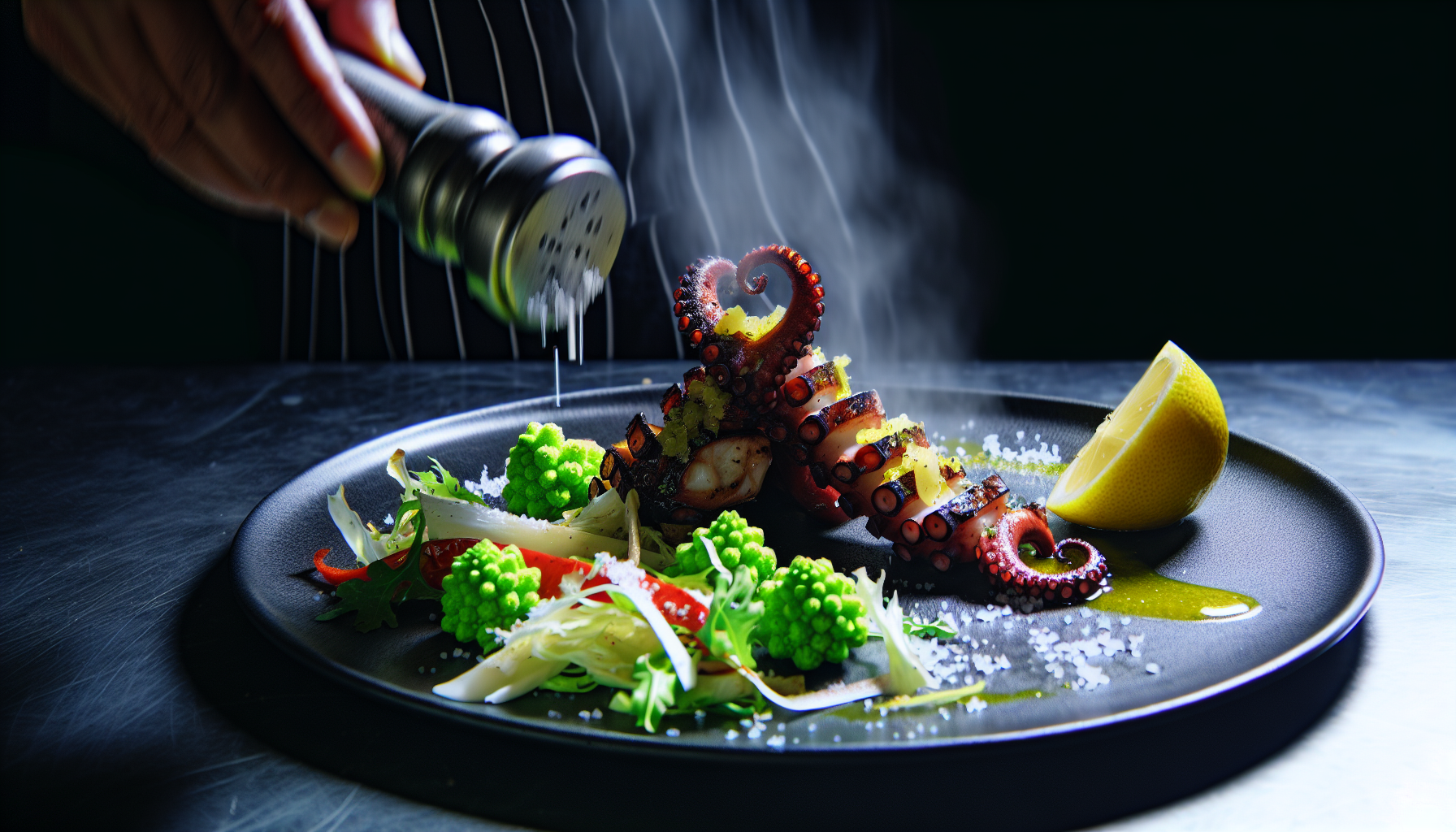 Grillitud kaheksajalg sidruni, tšilli ja Romanesco’ga (AI koka retseptid)