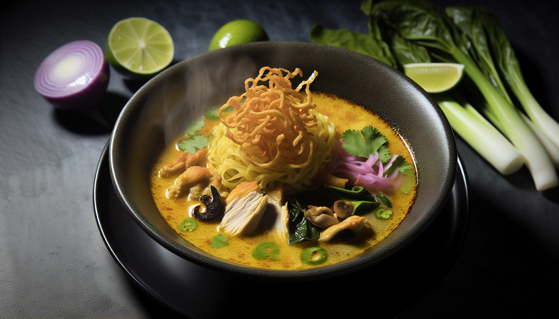 Khao Soi – Tai kookosnuudlisupp kanaga, shimeji ja krõbeda nuudlipesaga (AI koka retseptid)
