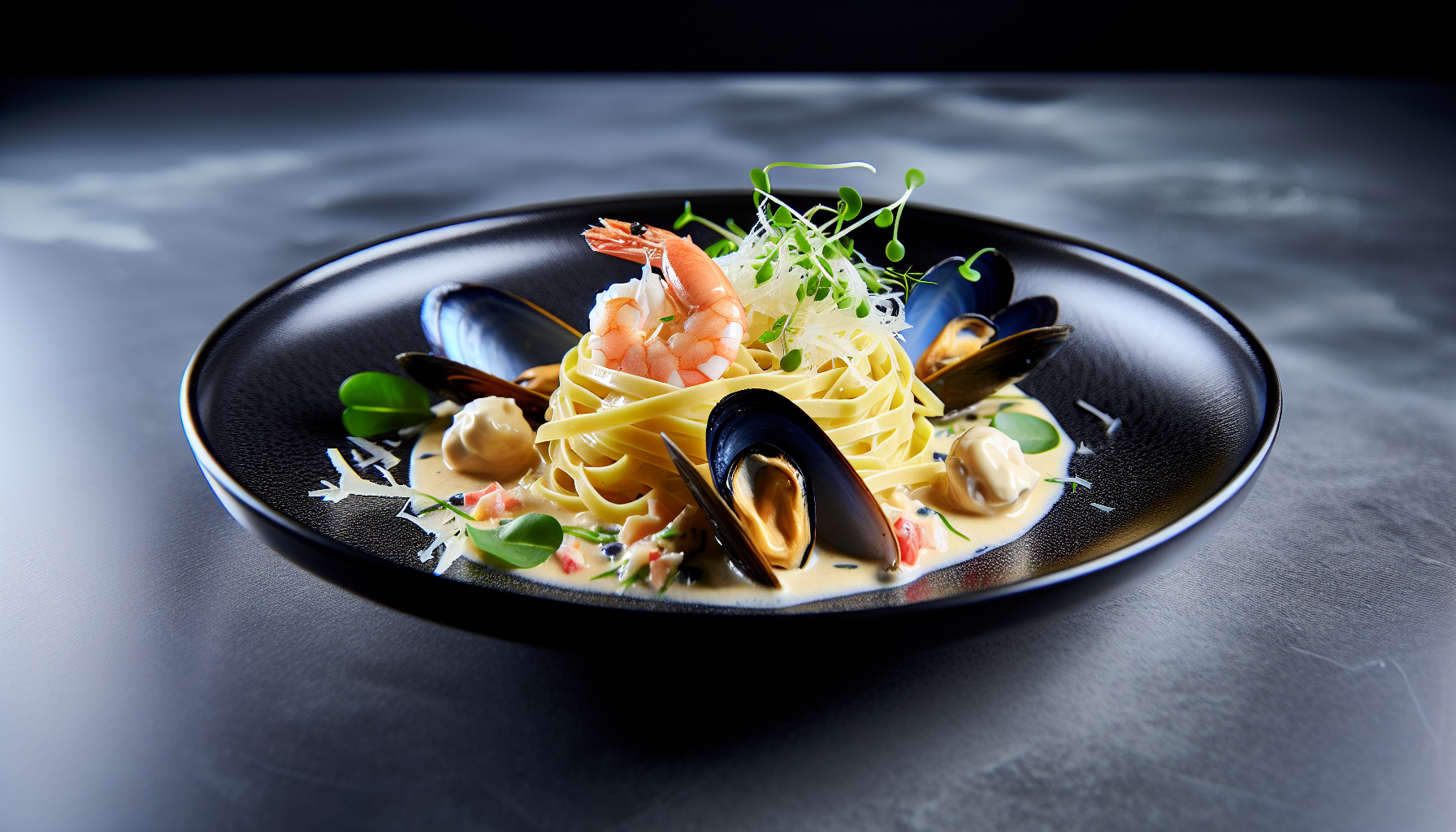 Yuzu-ponzu lisab klassikalisele koorepastale puhta hape-umami dimensiooni, mis tõstab mereandide naturaalset maitset ning tasakaalustab rikkalikkust. Sidrunise noodi kõrval on võisulam ja Parmigiano Reggiano sügav umami, mis seob komponendid üheks tervikuks. Viimistle roog poolitatud kirsstomatite, oliiviõlitäppide ja parmesanilaastudega – tulemuseks on restaoranitasemel taldrik, mis sobib nii a la carte põhiroaks kui ka degusteerimismenüü kulminatsiooniks. Tekstuurid – al dente tagliatelle, krõmps-kreemine kaste ja mereandide õrn suutäis – loovad rütmi, mis jääb meelde.