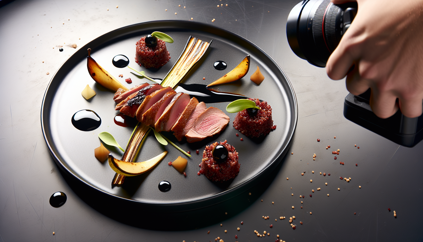 Krõbeda nahaga pardi rinnafilee mustsõstra–valgepalsami glasuuriga, punase kinoa ja röstitud suvikõrvitsa-pirniga (AI koka retseptid)