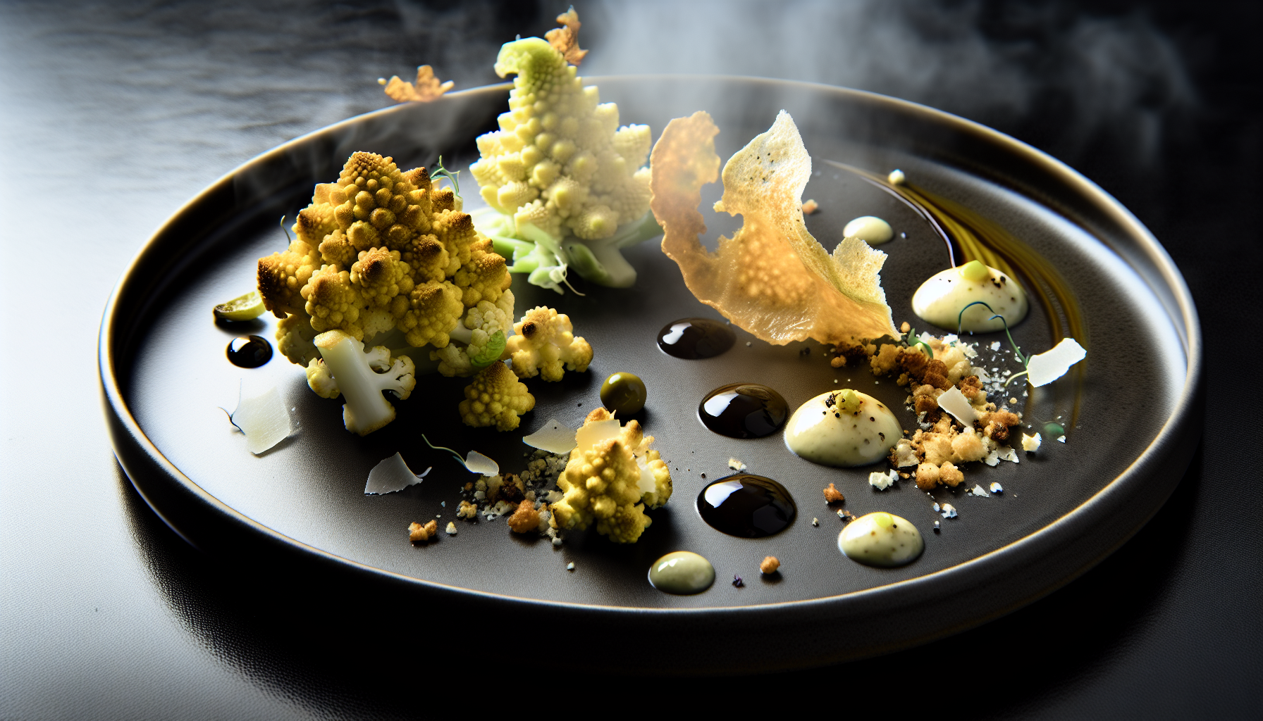 Röstitud lillkapsa ja romanesco praad musta küüslaugu kreemi, kapparivõi ja parmesanikrõpsuga (AI koka retseptid)