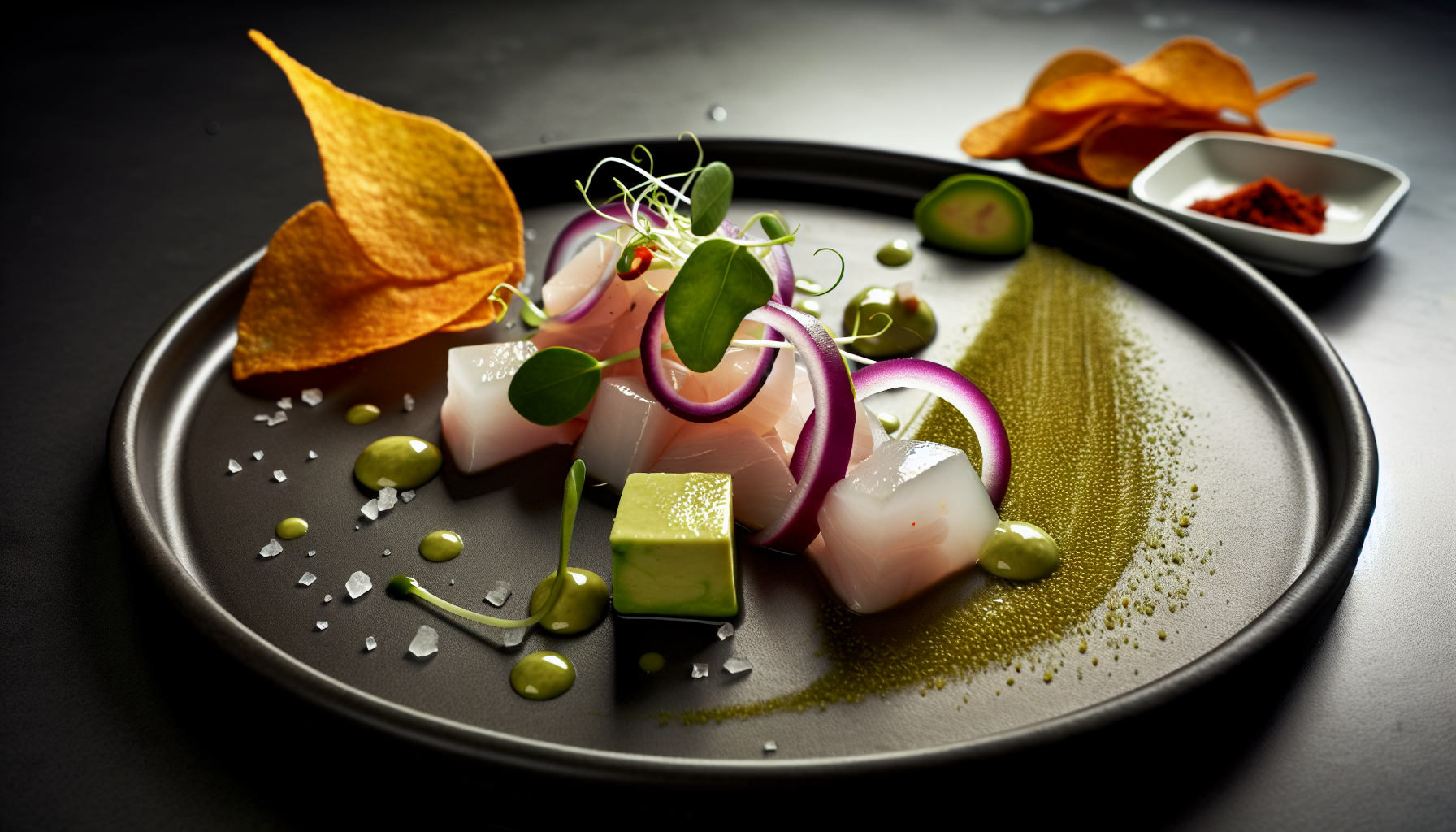 Tsitruse-ceviche huntahvenast, avokaado ja bataadikrõpsudega (AI koka retseptid)