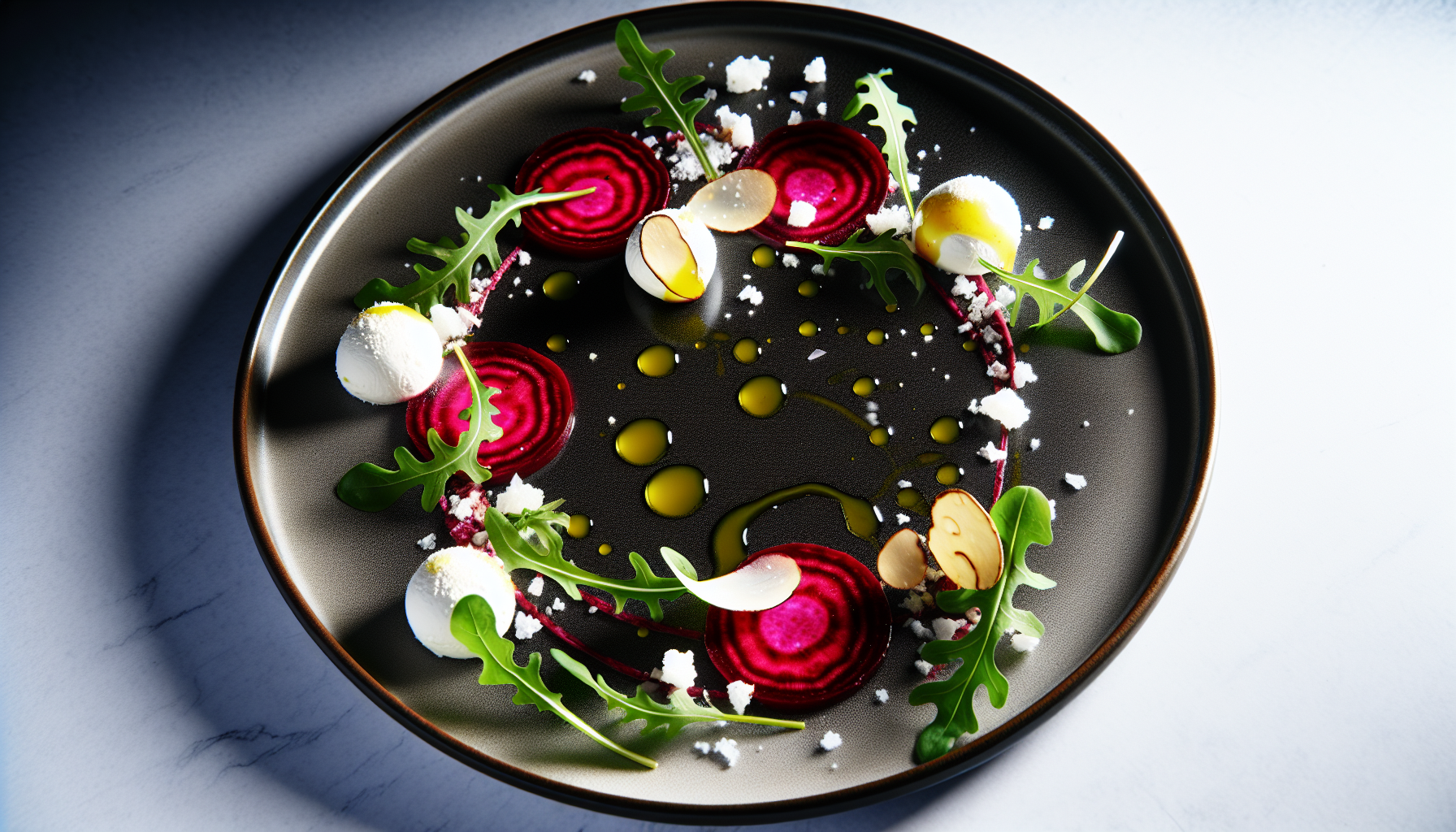 Valge palsami ja mee glasuuriga peedikarpaccio kitsekreemi ja röstitud mandlitega (AI koka retseptid)