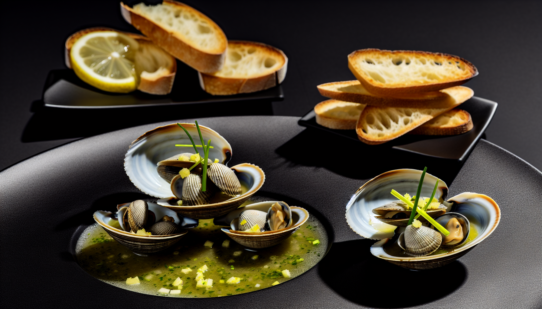 Veenuskarbid Cococciola-veinis, sidruni–küüslauguemulsioon ja röstitud baguette (AI koka retseptid)
